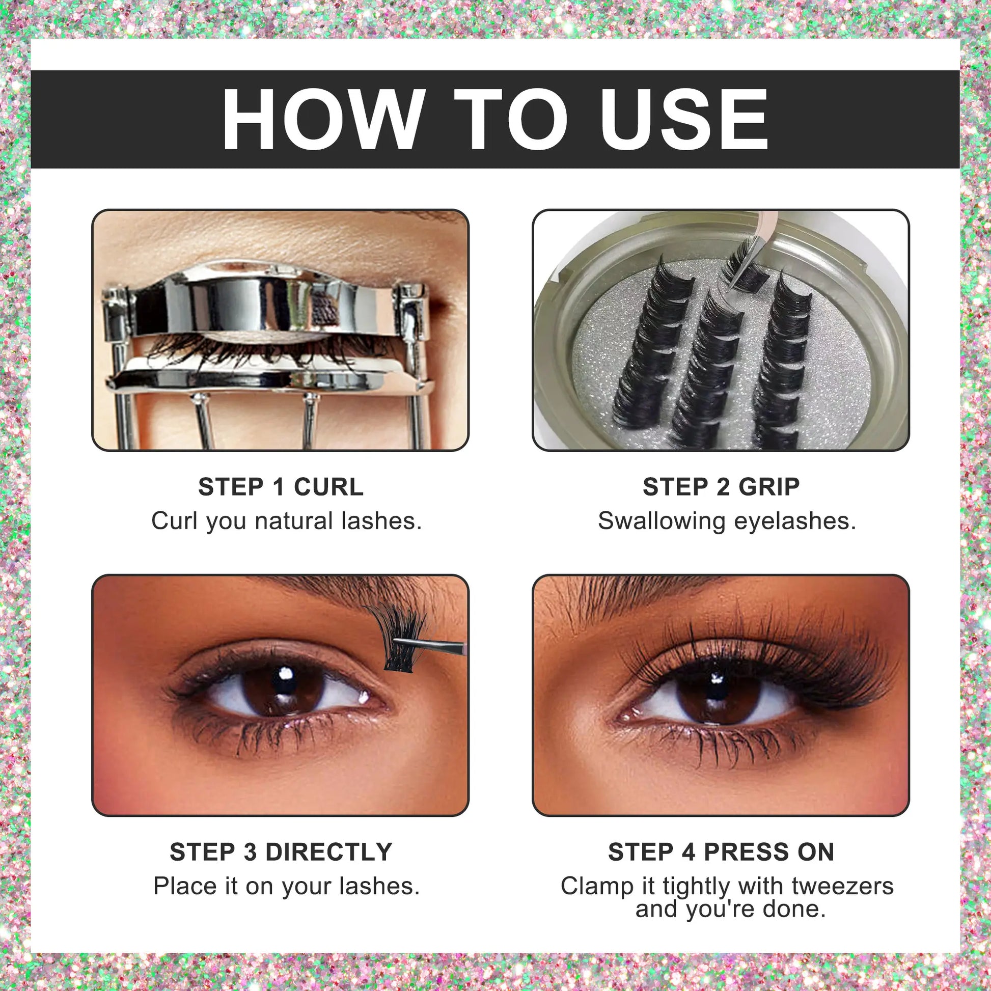Press on Lashes One Step Easy to Apply and Carry With Mirror Pre Cut Cluster Fluffy Individual No Glue Cluster Eyelashes