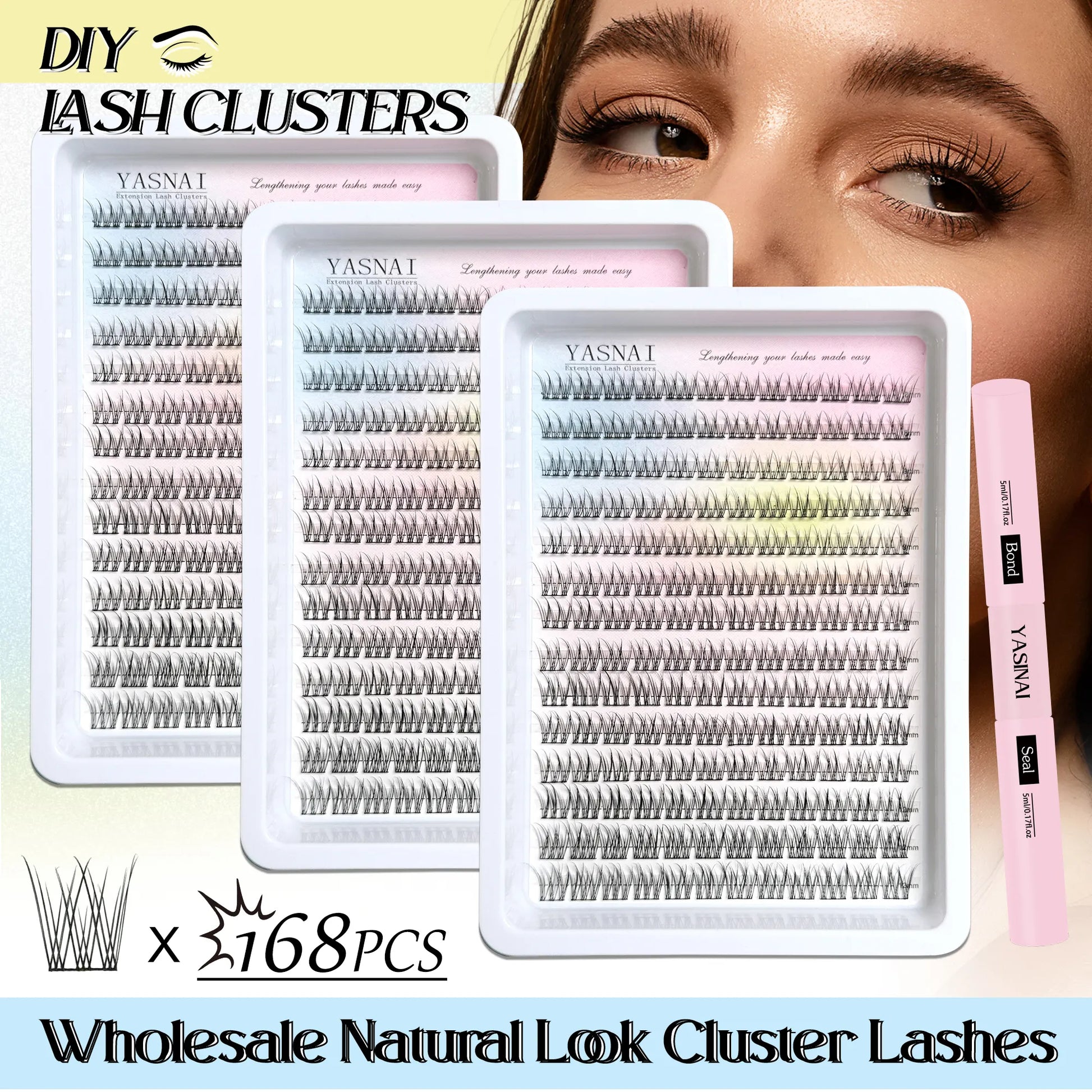 Pretty PBT Material Cotton Band Beginner Starter DIY Eyelash Extension Cluster Kit With Bond and Seal Waterproof
